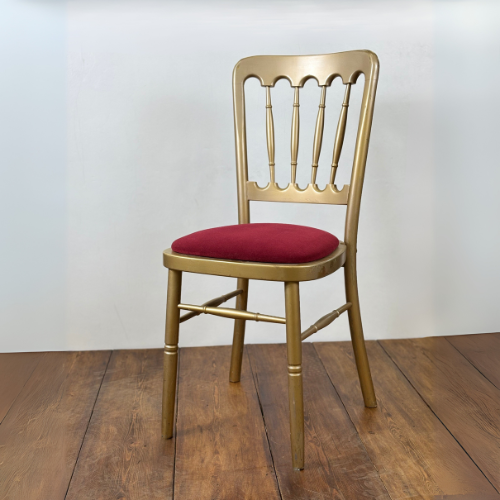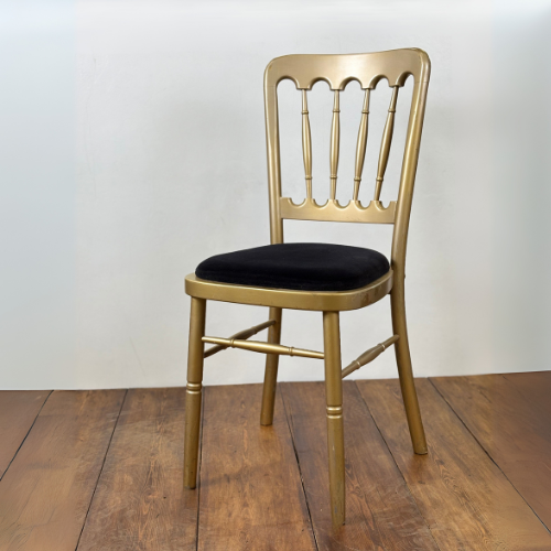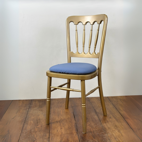 Our Champagne Gold Wooden Cheltenham Chair is available for hire covering Hampshire, Surrey and nearby towns across the South East.