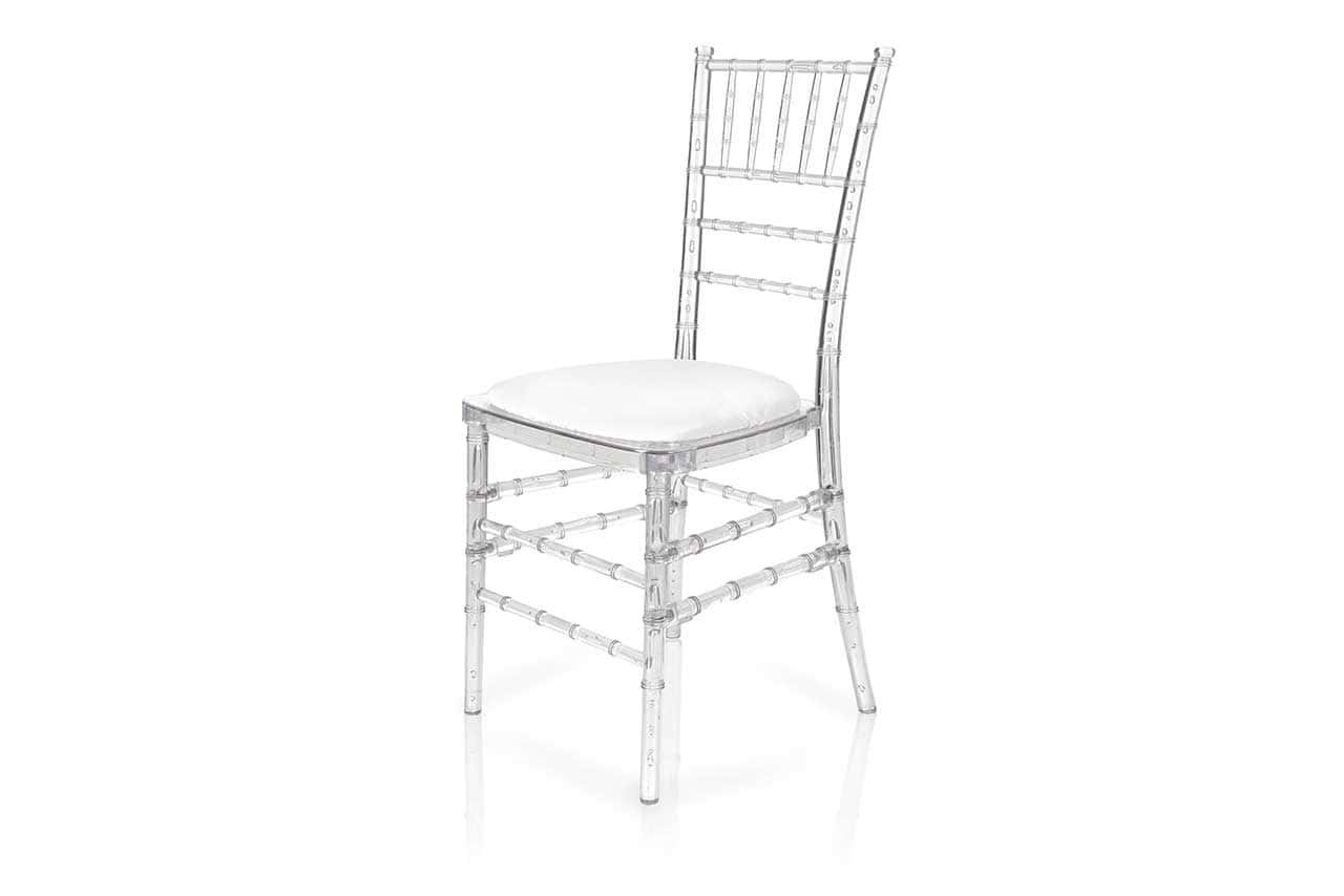 Ice Chiavari chairs available for all events. You have an option of seat pad colours, red, black or ivory.