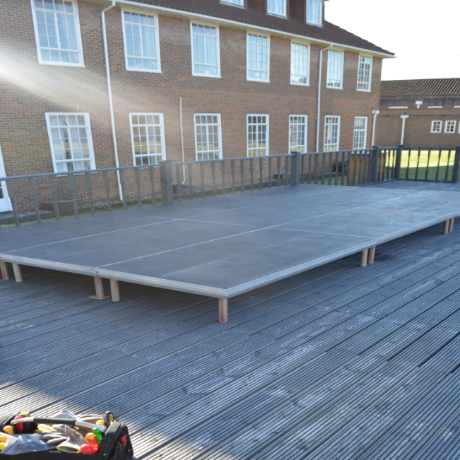Our pro stage package is ideal for any indoor or outdoor event that requires a safe, robust and professional stage hire. We can configure the blocks to make any configuration to suit any application such as catwalks, extra blocks for drum risers or tiered seating.