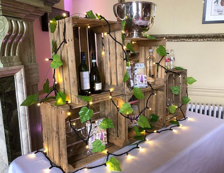 Our Vintage apple crates can be used as a back bar bottle display or to display food at the buffet.